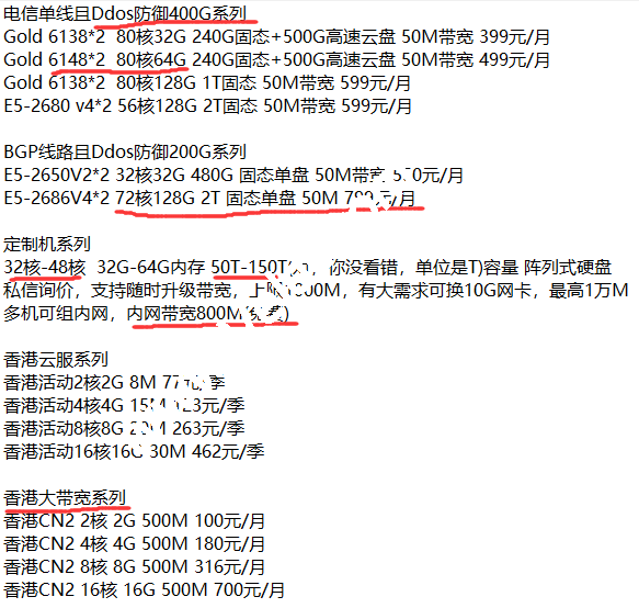 | 80核 | 128G | 1T固态 | 50M | 无限 | 400Gbps | ¥599/月 | 点击直达 |