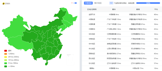 三网平均延迟是非常低的