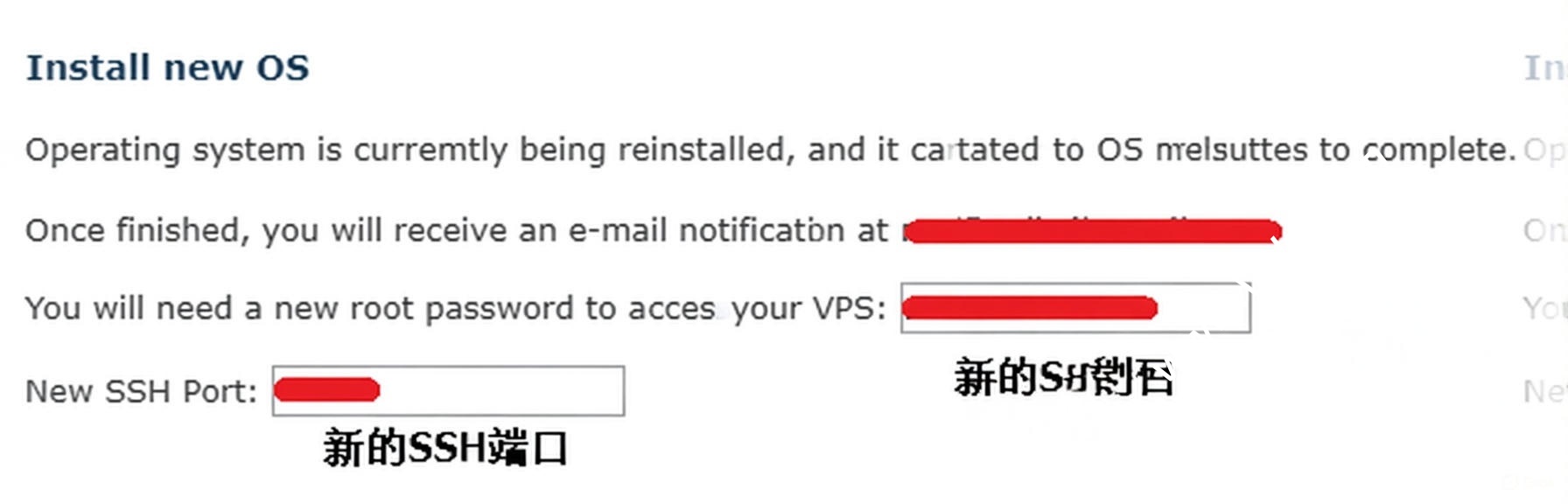 - 等待 1-5 分钟,重装完成后页面会显示新 root 密码和新 SSH 端口,同时会发邮件通知。