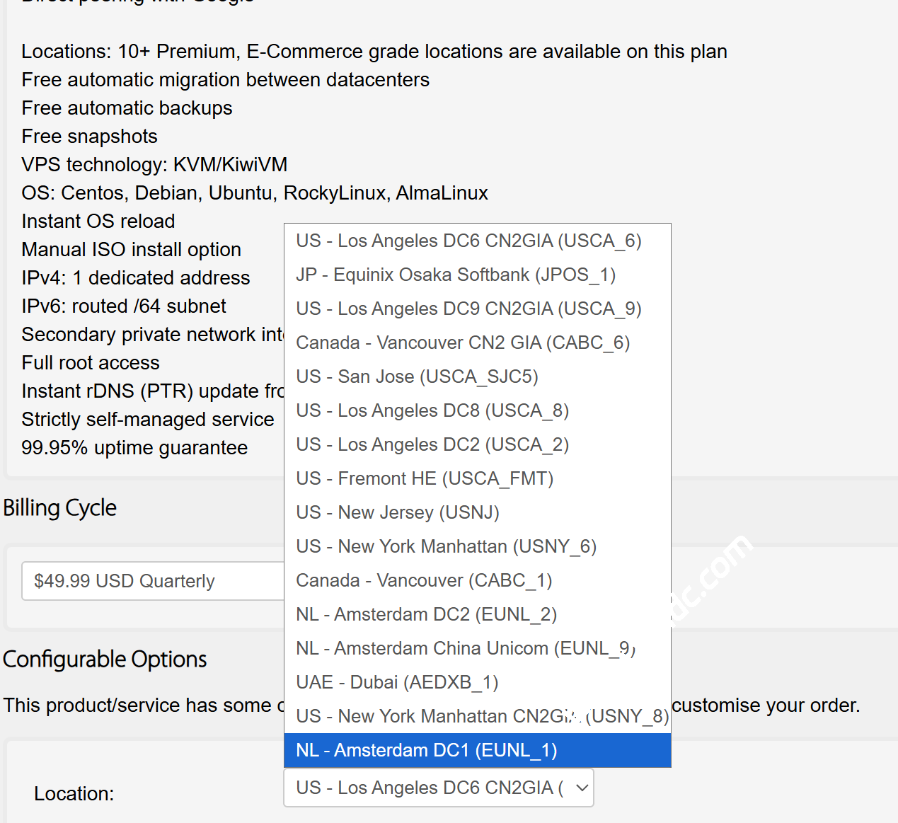 - 必须购买的时候就选择 EUNL_1,如果选择其他机房,购买后是无法迁入 EUNL_1 的!