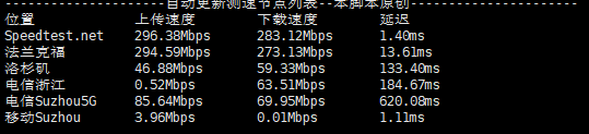 测速结果如下