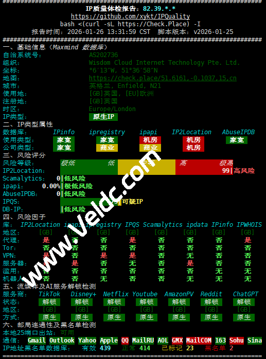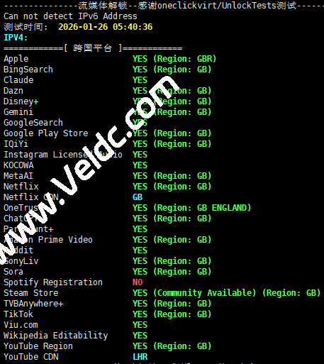 IP为英国原生,具有ISP属性,流媒体解锁的效果还可以,目前来看回程的路由不算特别差