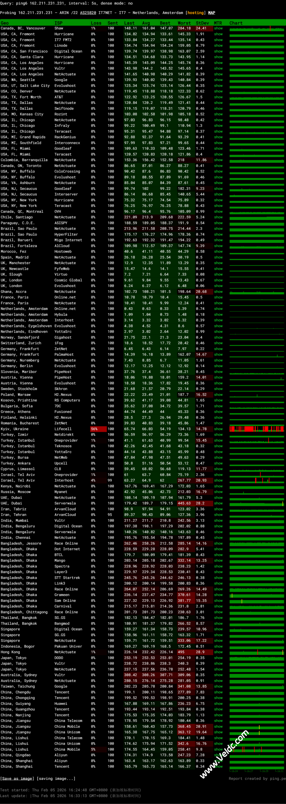 搬瓦工荷兰 EUNL_1 机房延迟测试