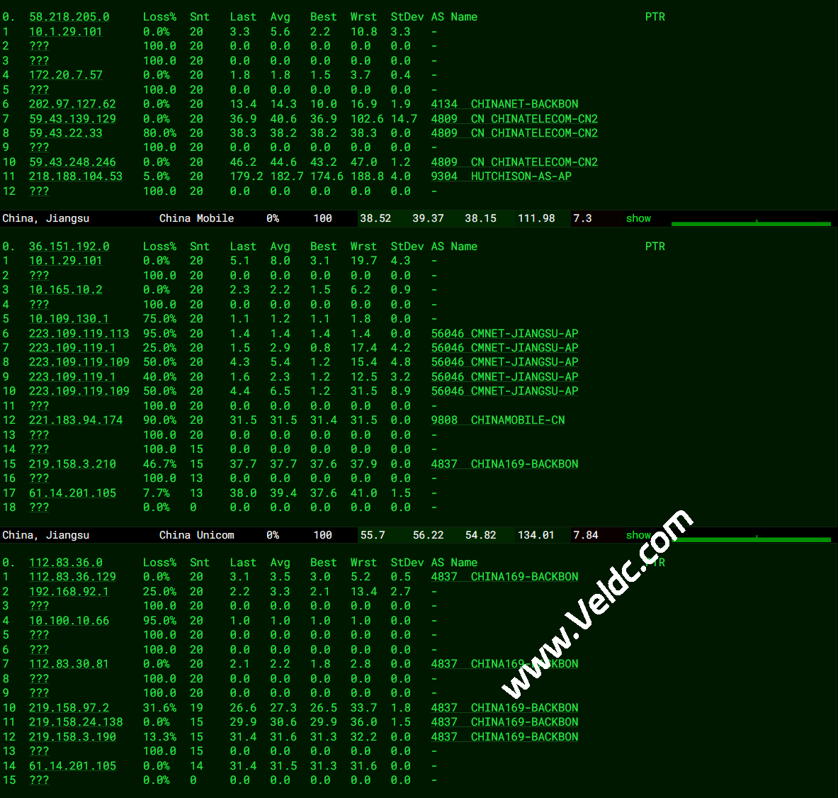 通过对江苏地区的电信、移动、联通去程路由分析,结论如下: